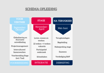 In november vertrek je voor een periode van 6 maanden. Tijdens deze praktijkgerichte stage in een vrijwilligersproject toets je je kennis- en begrippenkader aan de realiteit in een ontwikkelingsgebied.