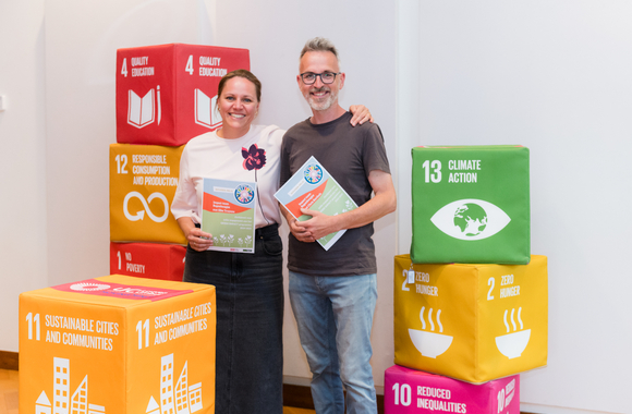 Dit enthousiast team denkt niet alleen na over duurzamere SID-in beurzen, ze realiseerden er ook herbruikbaar tapijt, lokale, duurzame en gezonde versnaperingen voor de informanten en een waterfontein i.p.v. massa's plastic wegwerpflesjes.