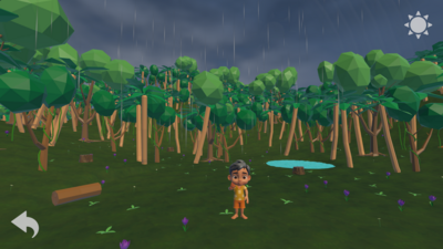 De organisatie tipte Jolien ook om een onweer toe te voegen. “Veel kinderen hebben schrik van onweer. In het regenseizoen stormt het minstens een keer per week. Deze angst is een storende factor. Ik probeerde dus via een onweerscene in mijn regenwoud om de kinderen deze geluiden en visualisaties met iets rustgevend te laten associëren. Het geanimeerde kind toont dat je niet bang moet zijn.”