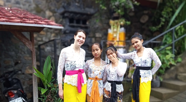 Jolien is niet aan haar proefstuk. Ze heeft heel wat ervaring als monitor in het jeugdwerk, o.a. voor Kazou. Tijdens haar secundaire school verbleef ze een half jaar in Nieuw-Zeeland. Voor haar vertrek naar Bali verdiepte Jolien zich in de Indonesische taal.