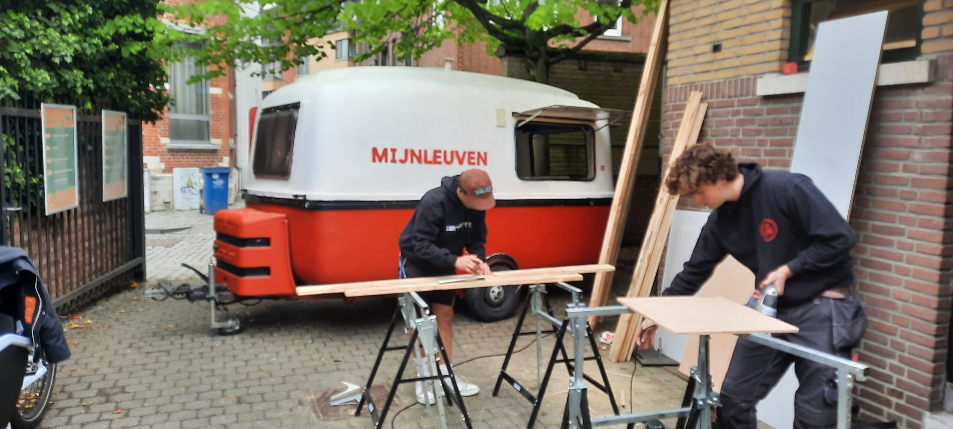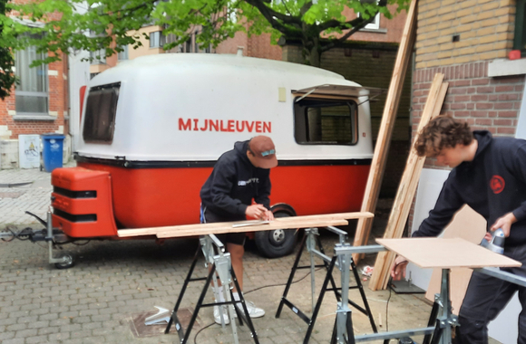 Seppe De Hont: “De vzw Mijn Leuven stelde de caravan ter beschikking. Verder mochten we rekenen op financiële steun van de Moving Minds Foundation van onze hogeschool. Ook dankzij de hulp van de Lions Club Leuven, Atelier Circuler, Maakbar Leuven, en Maakleerplek Leuven konden we onze plannen effectief omzetten in de realiteit.”
