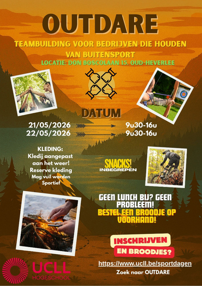 Op 21 en 22 mei 2026 organiseren studenten outdoor de UCLL Outdare-Day: Ultimate Survivor