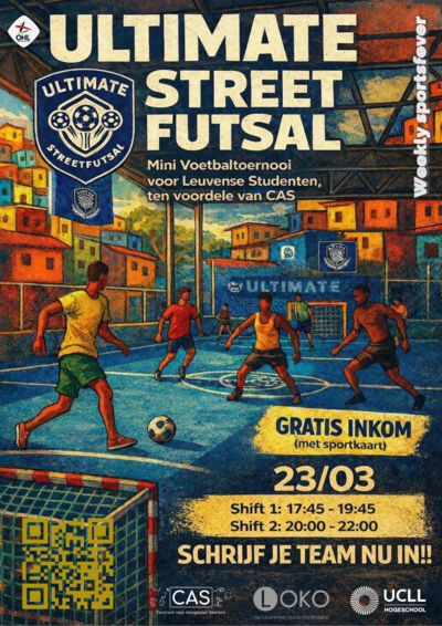 Klaar voor wat actie? Zet een grote cirkel in je agenda voor maandag 23 maart 2026, want dan brengen we de Ultimate Street Futsal vibes naar Heverlee!